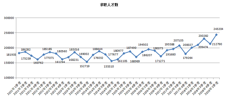 2019年第一季度,广西人才网联系统中文教/科研类职位的求职人才数为7330人,比上年同期增加1810人,同比涨幅达到32.79%。