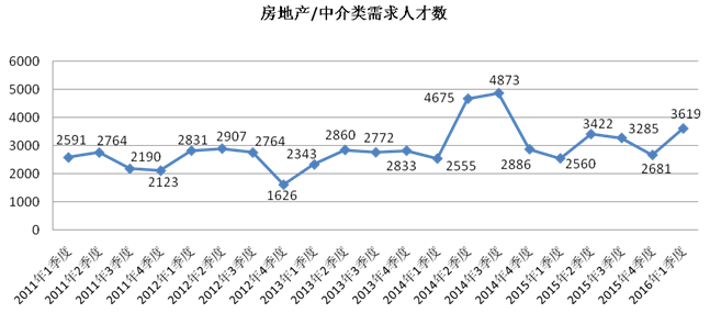 4、房地产/中介类职位人才需求量呈现明显上扬趋势