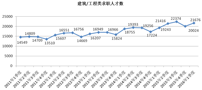 2.46个职位大类中,有36个职位类别的人才供应同比上涨。其中建筑/工程类职位的人才供应依旧是求职增长量最大的职位类型,达到21676人,与去年同期相比增加2433人,同比增长12.64%。