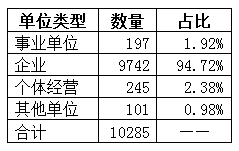其中,用人单位中企业数量比去年同期增加13家,与去年同期基本持平,微涨0.13%。具体企业数量分布见下表: