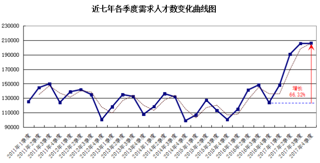 近七年季度需求人才数曲线图如下: