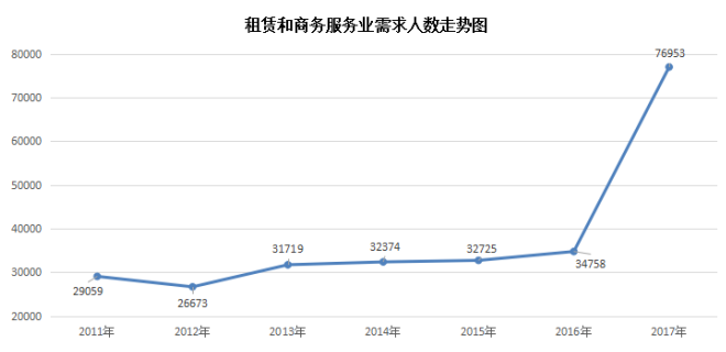 2017年,广西全区生产总值(GDP)20396.25亿元,首破二万亿元。按可比价格计算,比上年增长7.3%,增速高于全国0.4个百分点,总体呈稳步增长的态势。三大产业占GDP比重分别为14.2%、45.6%和40.2%,其中第三产业为2004年以来的最高水平,本年度对经济增长贡献最大,成为拉动我区经济增长的第一动力。在宏观经济稳健发展的背景下,广西人才网联系统中用人单位数量和人才需求量也呈现稳步增长趋势,特别是第三产业中新兴行业持续蓬勃发展,对人才的需求呈现快速增长的趋势。
