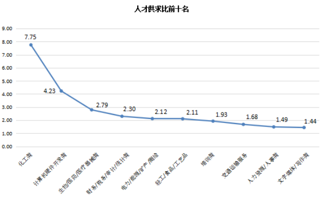 近七年人才供求比曲线图: