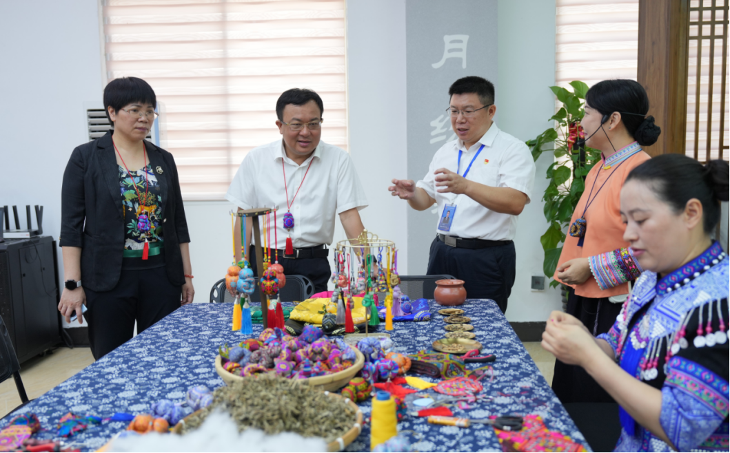 唐标文(左二)在广西右江民族商业学校了解非物质文化遗产“麼乜”的职业技能培训开展情况